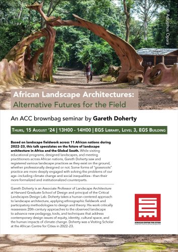 Aug 15 1:00 pm - 2:00 pm Brownbag seminar: African Landscape Architectures_Alternative futures for the field